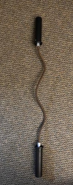 I bought some rebar online because it was very cheap, relatively bendable, and had a good enough grip. I then used a vise to bend the rebar into roughly equally segmented parts at roughly a 30-degree angle, as I found it to be the most comfortable. I then attached some barbell collars I found on Amazon to the ends using 3D-printed collars and metal pipes I found. I have tested out the barbell a few times, and it works very well for tricep training, but it is not as good for bicep training.